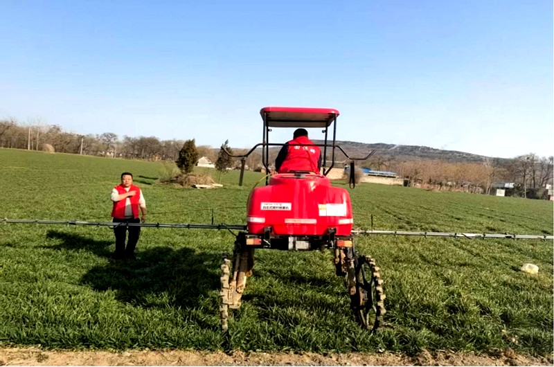 田保姆为农服务中心根据土地托管群众的实际需求,迅速出动无人机和自走式喷雾剂,高效开展除草剂喷洒作业。同时,技术人员还根据小麦的实时生长情况,现场为群众讲解科学管理的要点,帮助群众更好地掌握田间管理技巧。