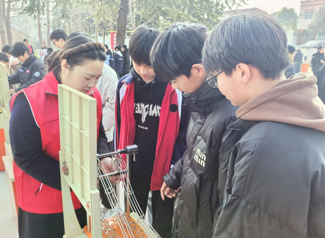 活动现场,许昌市、禹州市、鄢陵县科普大篷车联合展出的最速降线、无弦琴、滚出花样、画五角星、短期记忆测试等30余件科普展品涉及力学、电磁学、光学、数学等多学科知识,受到师生们的热烈欢迎。学生们在志愿者的讲解与指导下,争先恐后地动手操作体验,尽情感受着科技带来的无穷乐趣。