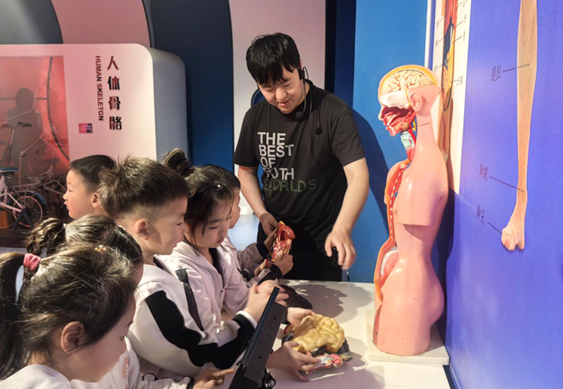 在人体器官构造展区,科技馆讲解员以“人体探秘” 为主题,带领孩子们开启了一场微观世界的奇妙之旅。借助 3D 人体解剖模型,孩子们看到了人体内部精密的构造。“心脏就像一个永不停歇的水泵,每天跳动约 10 万次,为全身输送血液。” 生动的比喻让抽象的知识变得通俗易懂。