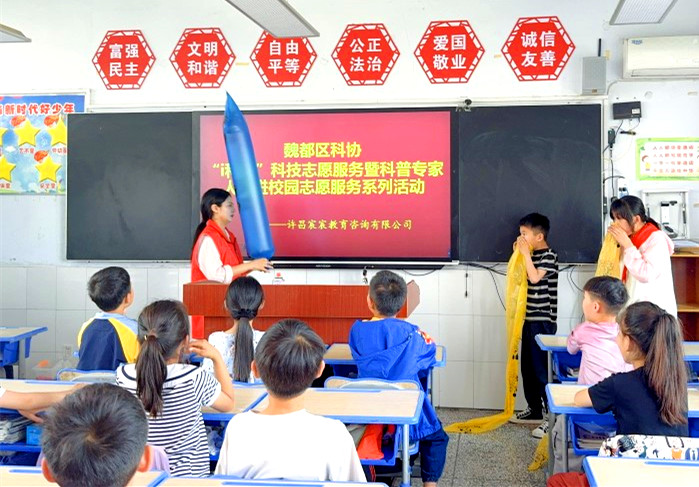 为进一步培养青少年学习科学的兴趣,5月7日,许昌市魏都区科协科普志愿者走进大罗庄明德小学,开展“i科普”科技志愿服务进校园活动。通过一系列生动有趣的科学实验和互动课程,为学校三年级的50余名学生带来一场奇妙的科学实践之旅。