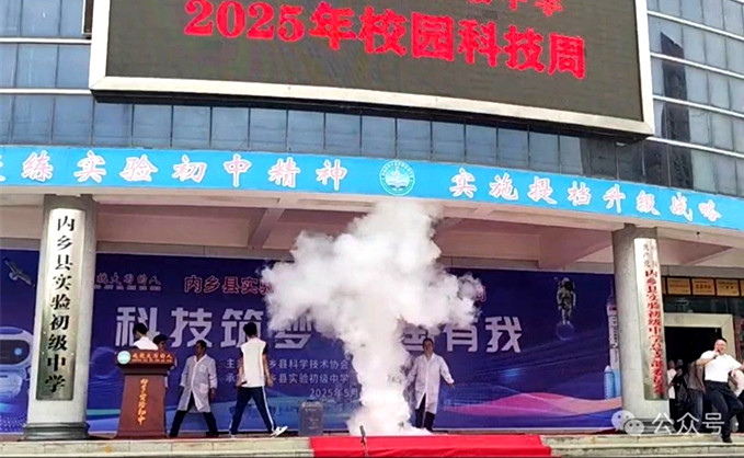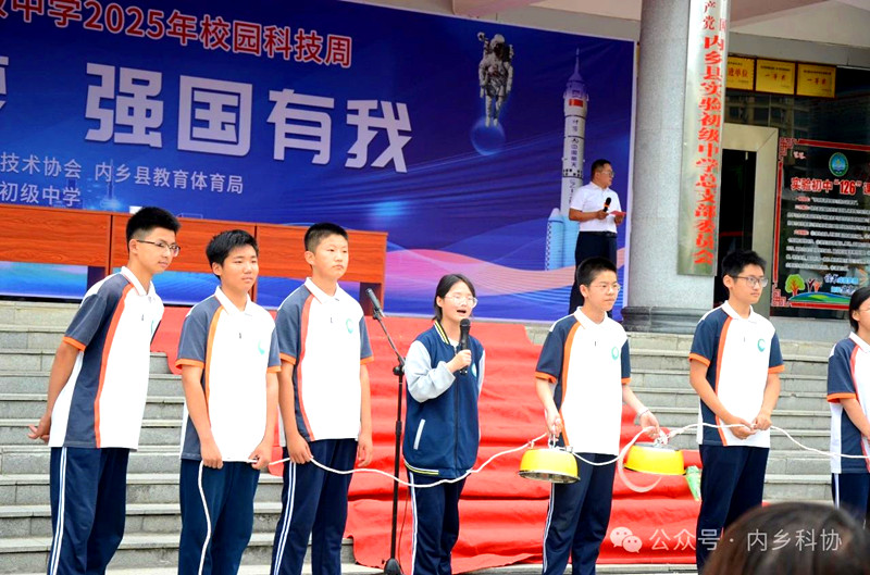 5月13日上午,内乡县实验初中校园内青春飞扬、科技涌动,以“科技筑梦,强国有我”为主题的2025年科技节开幕式在热烈氛围中拉开帷幕。本次活动由内乡县科协、内乡县教体局联合主办,内乡实验初中承办,旨在激发青少年科学探索热情,培育创新实践能力,为全县学子搭建一个展示才华、交流智慧的广阔舞台。近4000名学生和近300名教师全员参与。