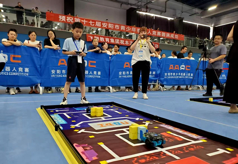 7月5日上午,第十七届安阳市青少年机器人竞赛在安阳示范区飞翔中学体育馆拉开帷幕。此次活动由安阳市科协、市教育局、市科技局联合主办,旨在提升安阳市各阶段青少年科学意识和综合素养,培养青少年的创新精神、工程思维和实践能力,鼓励更多的青少年机器人爱好者在高新技术等领域进行学习、探索、研究和实践。