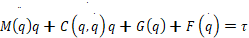 其中,M(q)为惯性矩阵,C(q,q̇)为离心力和科里奥利力矩阵,G(q)为重力项,F(q̇)为摩擦力项,τ为广义力矩向量。