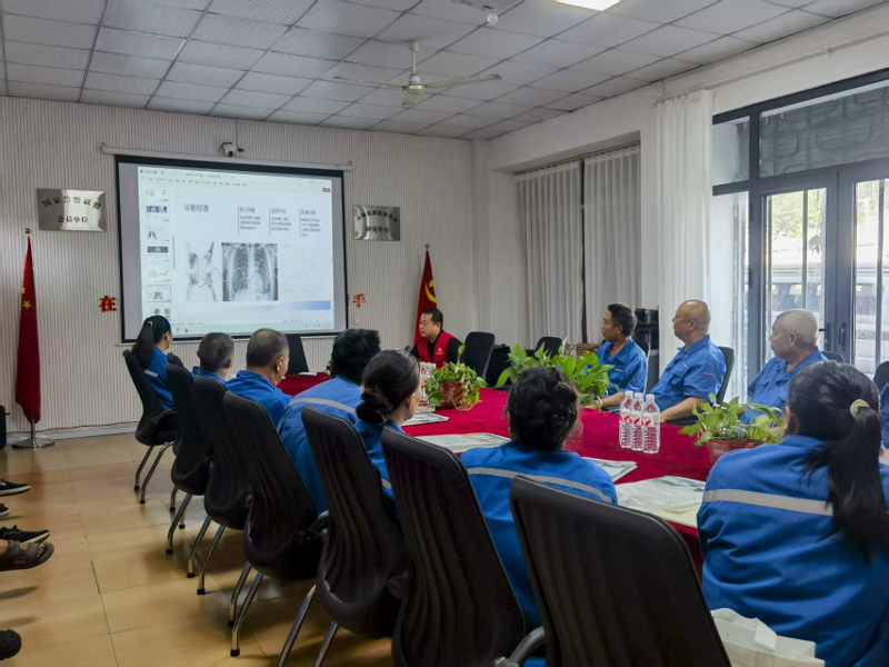 活动现场,科普专家服务团成员、凤泉区人民医院张继祥副主任医师通过图文并茂的 PPT,深入浅出地介绍了尘肺病的成因、症状及危害。结合水泥厂的实际生产环境,张医生详细讲解了粉尘来源与接触风险,强调了尘肺病预防措施的重要性。他从个人防护用品的正确佩戴、良好作业习惯的养成以及工作场所通风除尘系统的必要性等方面进行了阐述,并分享了尘肺病早期筛查方法与定期体检的必要性,告诫工人们要关注自身健康状况,做到早发现、早干预。