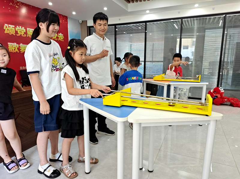 科普实验秀环节,“小球拉大球”演示了离心效应的实际应用;“空气炮”发射的涡环气流清晰呈现空气动力学特征;“水流星”旋转时,则利用高速旋转下水流的稳定现象,展示向心力与离心力的动态平衡。“钢球爬坡”项目前更是人头攒动,参与者不断调试轨道坡度、角度和钢球初始速度,直观感受重力势能、动能的相互转化与力学平衡条件。