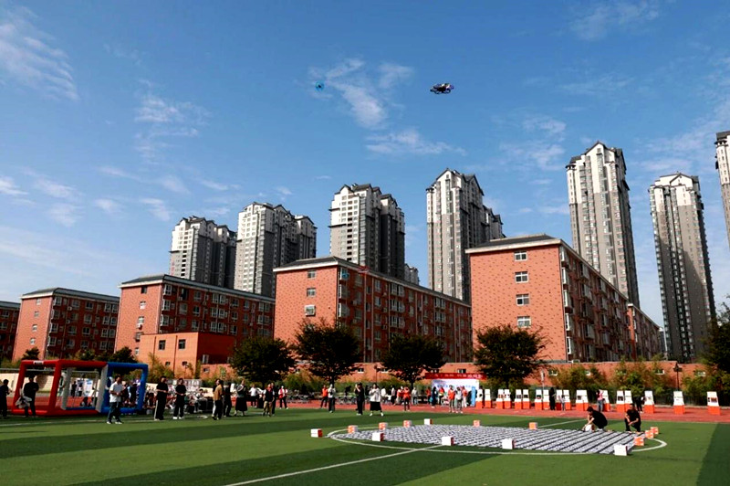 9时30分起,精彩的科技表演与展示环节成为全场焦点。空中,无人机拉烟表演划出绚丽轨迹,引得现场阵阵欢呼;地面,垂起无人机、航拍无人机、植保无人机等整齐陈列,工作人员详细讲解不同无人机的功能与用途。M300无人机用清晰的语音向大家问好,编程无人机按照预设路线灵活飞行,空中足球无人机在特制场地里展开趣味“对战”,固定翼苏27模型飞机模拟飞行场景,让孩子们目不暇接。最受欢迎的当属无人机体验区,孩子们排队等候,亲手操控足球无人机、编程无人机,在实操中感受科技的乐趣,脸上满是专注与喜悦。