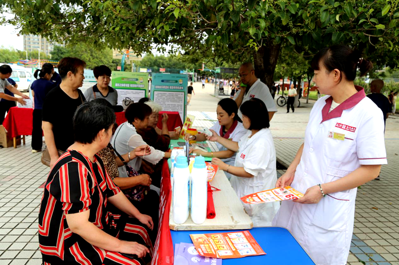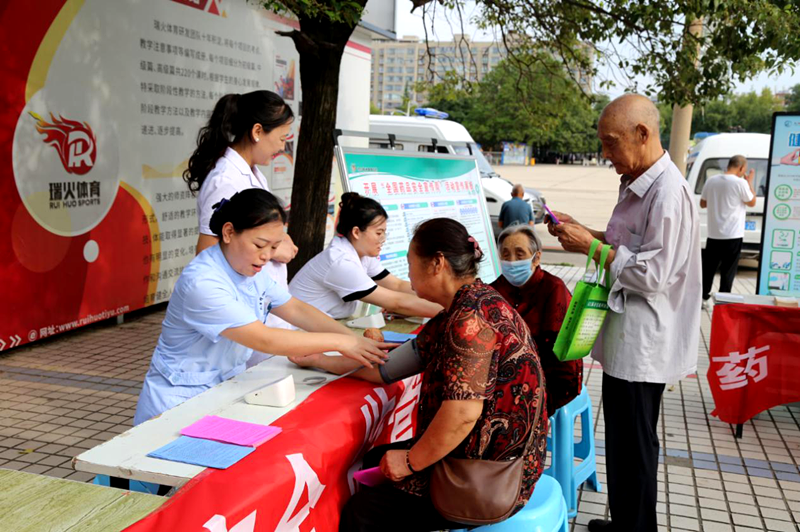 药械经营使用单位在活动现场设立服务台,开展义诊,提供免费测量血压、血糖等便民服务,科普安全用药理念和实用知识,中医药保健知识。