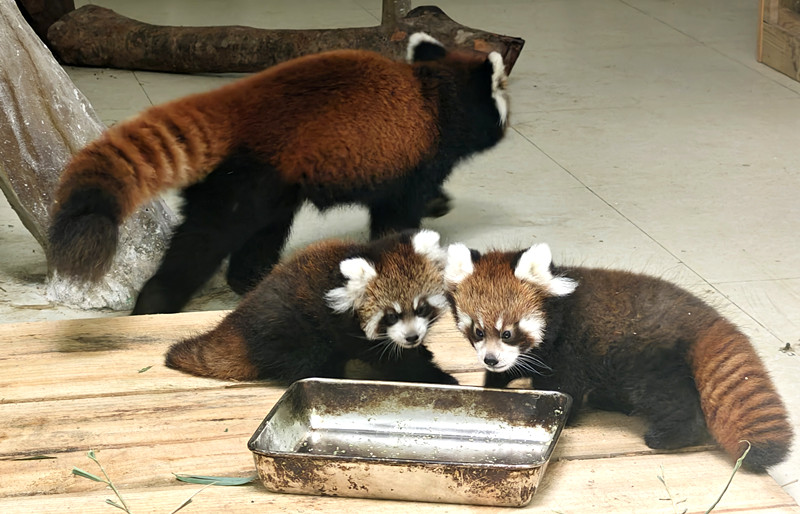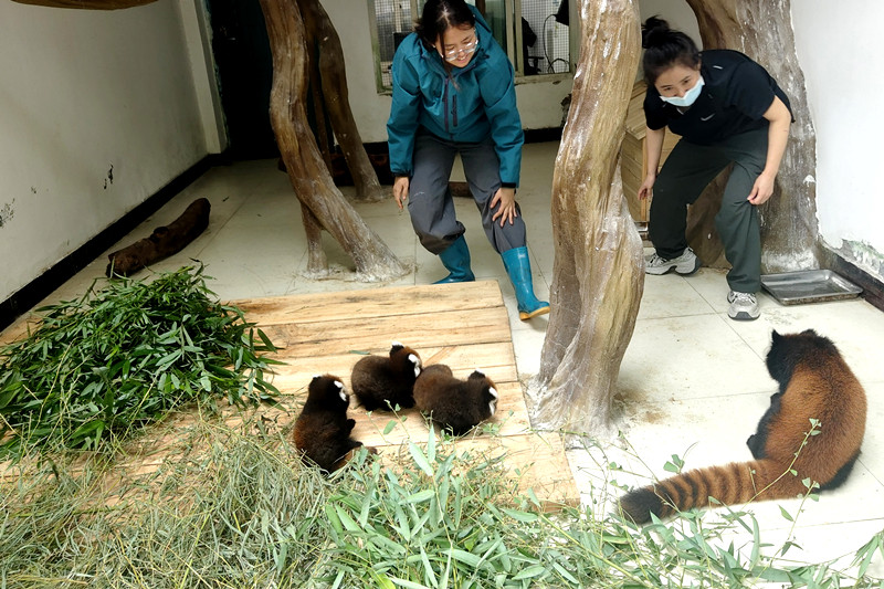 小熊猫家族也为大家带来了喜讯,今年7月初,小熊猫家迎来了4个小宝宝,其中一个生的是三胞胎。它们从出生起,就和妈妈们形影不离,在妈妈的照顾下长得健康又结实。在中秋国庆双节到来之际,这4个小宝宝也要在育幼室和大家见面了。