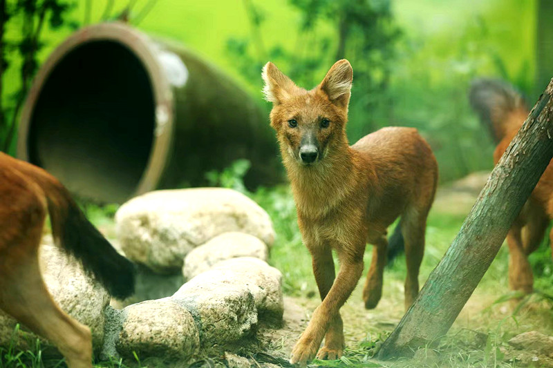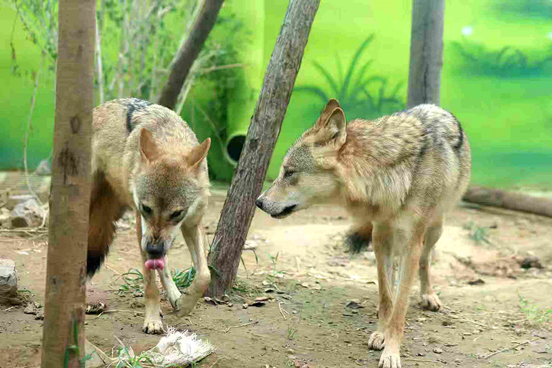 针对不同动物的生活习性,每一个展区又有所不同,比如在狼、豺的展区,为它们设计了高低不平的小径,鼓励狼像在野外一样巡逻边界,设置枯树倒木,满足了狼刨洞作窝的习性,同时为其提供躲避空间。
