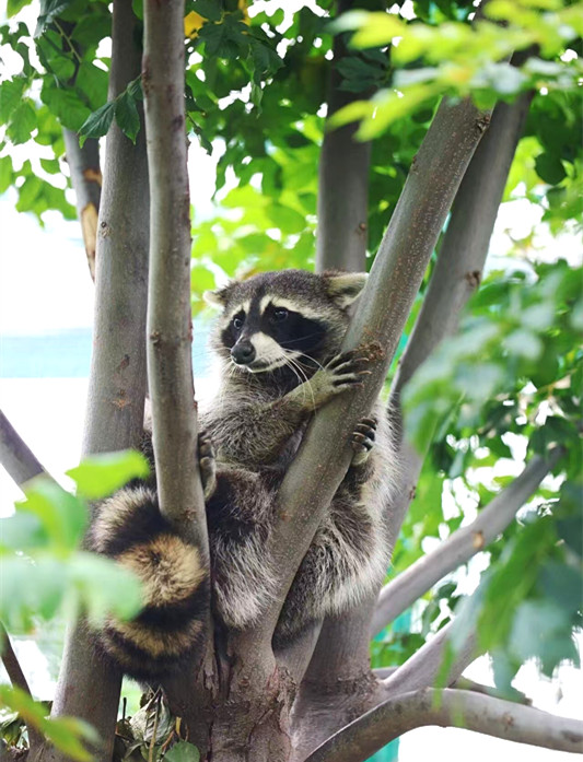 而在浣熊展区,为了满足它们极强的探索欲,专门设计了可供其翻找的枯树堆和可以游泳的水池,游客可以观赏到它们“洗”食物、掏树洞的滑稽模样。