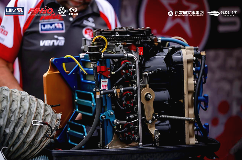 这些赛艇搭载高性能V6发动机,以10000转/分钟的转速和400匹马力的功率运行,提供强劲动力。值得一提的是,F1H2O摩托艇没有刹车装置,只有油门控制,除了静止就是极速。