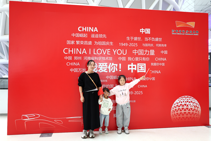 假期期间,场馆内人头攒动、气氛热烈,国庆元素装点着场馆各个角落,喜庆氛围浓厚。尤其位于中庭的“我爱你!中国”背景板,更是成了热门打卡点,每一位进馆的小伙伴都会停下脚步,在这里定格与家国同庆的美好瞬间。