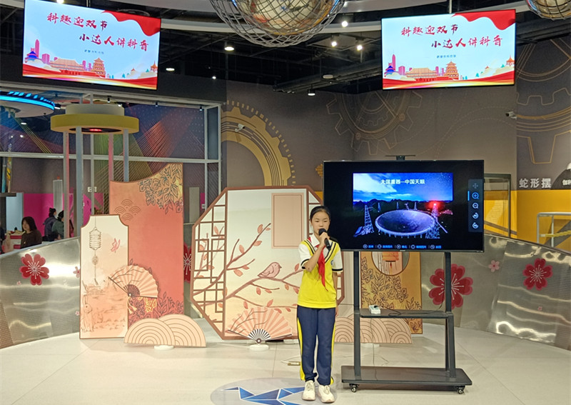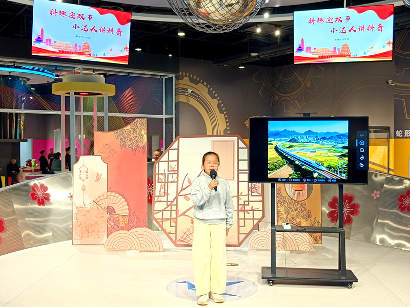 科普小达人们化身“小小讲解员”,围绕中国天眼、中国高铁等知识,用同龄人听得懂的语言传递科普知识,向现场观众讲述相关科普知识,让他们在实践中收获成长与认可,成了展厅里一道独特的风景线。对小达人们来说,这不仅是展示自我的舞台,更是把课堂知识转化为实践表达的锻炼机会,有小达人说:“为了讲清楚高铁原理,我查了好多资料,现在自己也记得更牢了。”