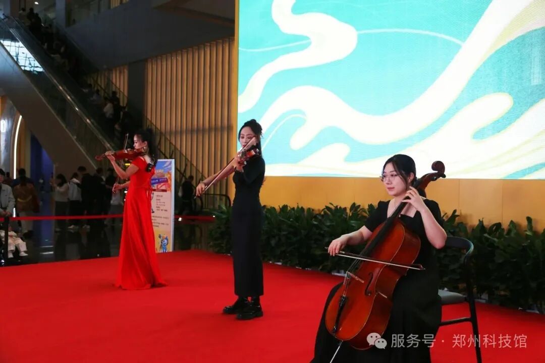 一场震撼的科技快闪率先拉开序幕:小提琴与大提琴奏响《我和我的祖国》的经典旋律,悠扬乐声在科技殿堂中流转,唤醒每个人心底的家国情怀。