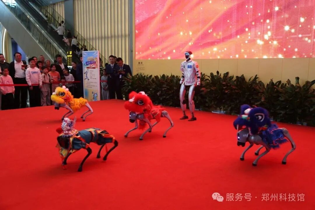 “机械新纪元——天地荟萃”表演更是将科技的魅力展现得淋漓尽致,机器人“郑小科”以其逗趣的动作和精准的互动,与观众们一起挥手、比心,为热情洋溢的人群鼓掌喝彩,仿佛成为了大家的朋友。而机器狗们则活力四射,不断展现出超高难度的倒立、跳跃等动作,引得台下观众阵阵喝彩与欢呼。这场人机协作的视听盛宴,不仅让观众直观地感受到了前沿机器人技术的无限可能,更点燃了大众尤其是青少年对科学与未来的浓厚兴趣。