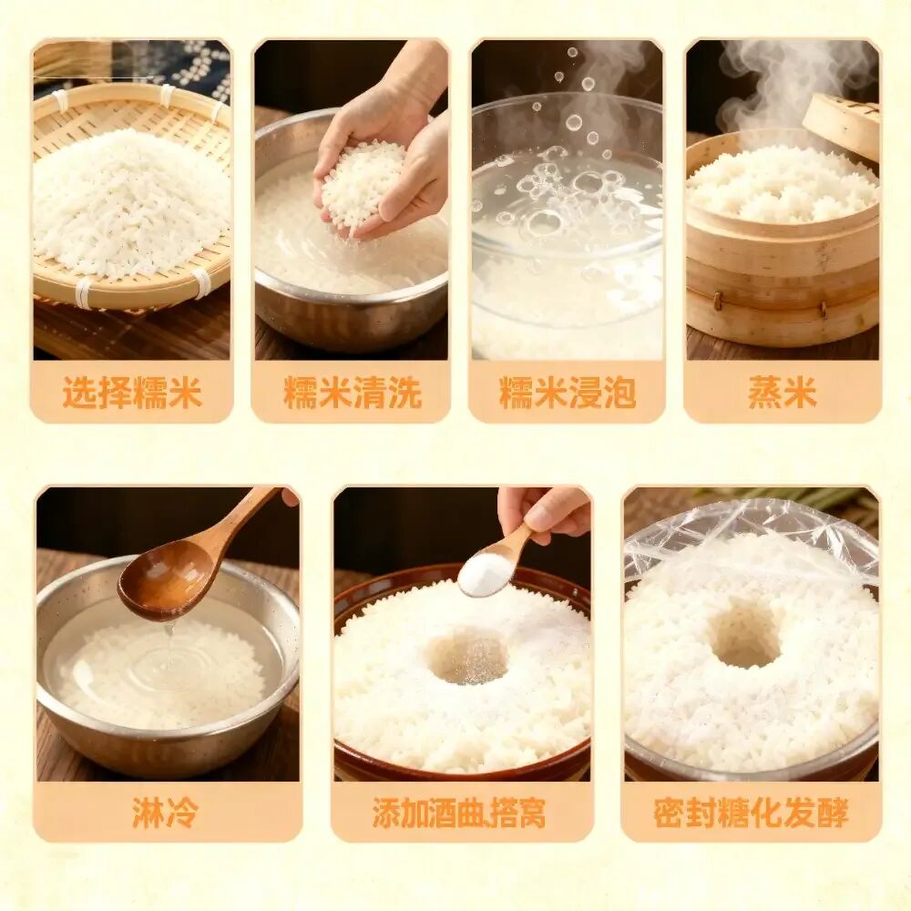 清洁:从浸泡糯米的盆,到蒸饭的蒸锅、屉布,再到发酵容器和搅拌用的勺子,所有接触糯米的器具都必须绝对干净、无油、无生水,彻底清洗。任何杂菌的污染都可能导致发酵失败,出现霉变或味道酸败等问题。