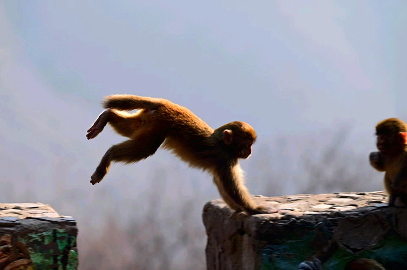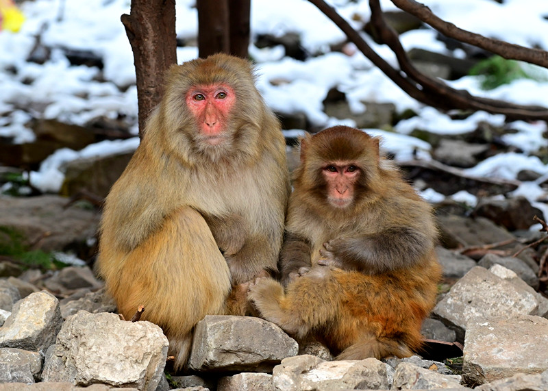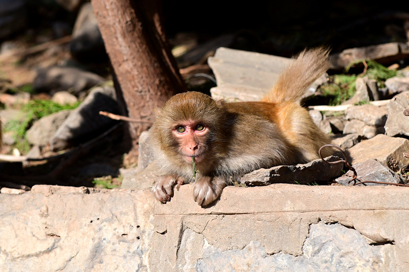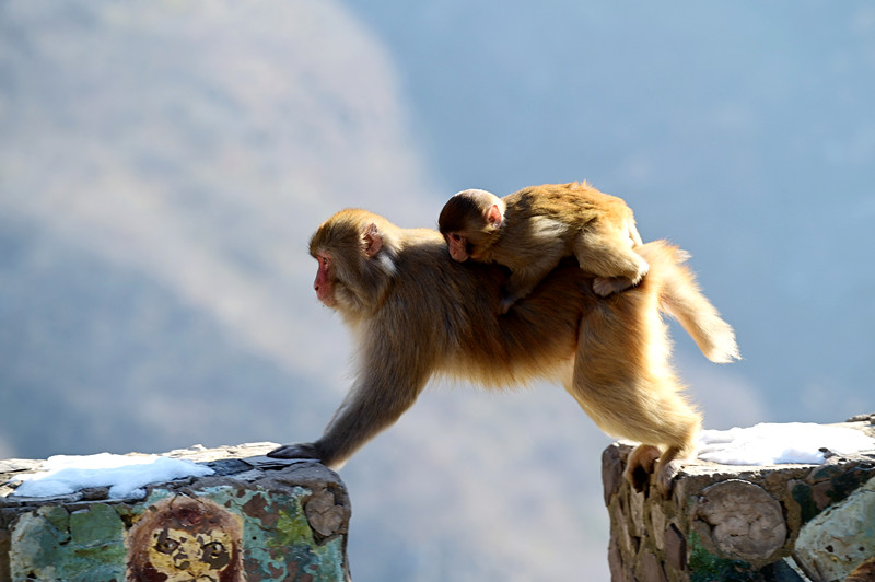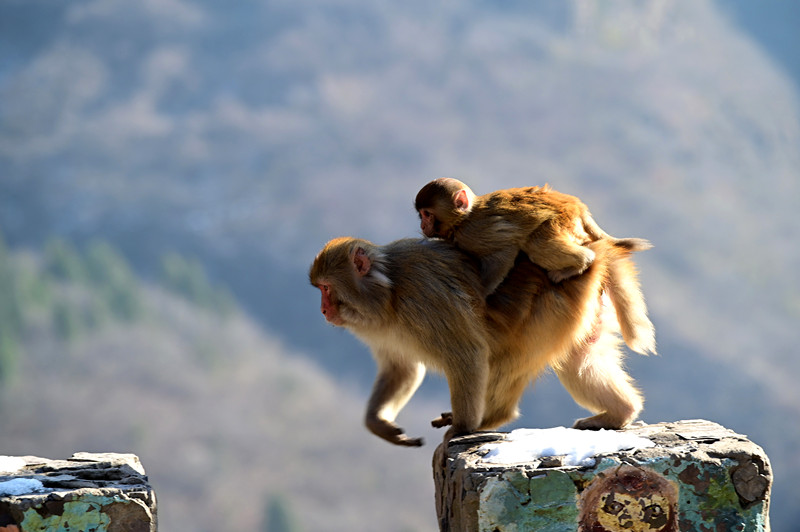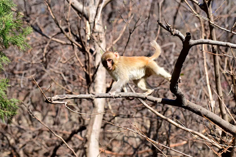 在沁阳市神农山风景区拍摄的野生太行猕猴。
