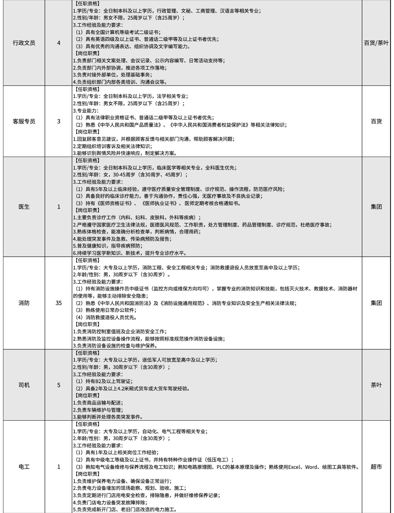公告显示,行政文员、客服专员要求本科及以上学历、年龄在25周岁以下;医生性别要求女性,30-45周岁(含30周岁,45周岁)、工作经验及能力要求具有5年及以上临床经验、持有《医师资格证书》《医师执业证书》、医师定期考核合格通知书。