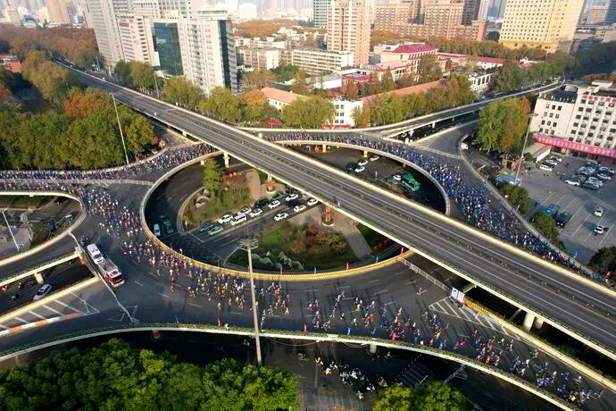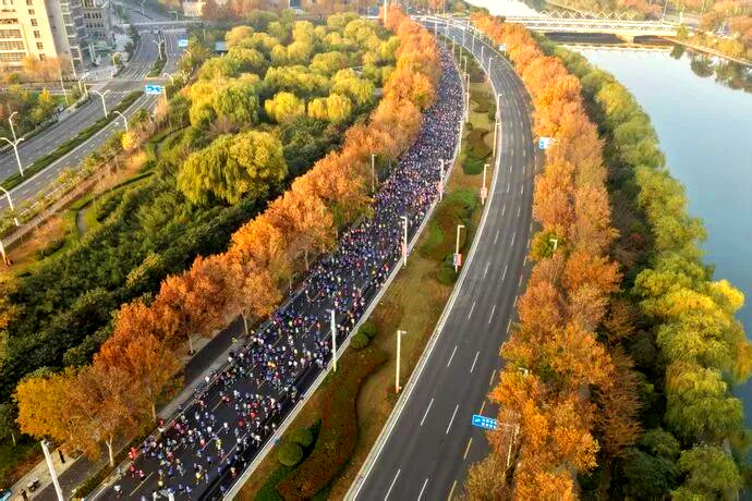 42.195公里的马拉松赛道,串联起“大玉米”、郑州国际会展中心、商城遗址、二七纪念塔、龙子湖等城市地标。赛道上,一个个活力四射的身影,穿越在城市之间,用脚步点燃城市激情;赛道旁,市民群众加油呐喊声成片,为初冬的郑州注入一阵阵暖意与热情。赛道内外互动共振,城市与赛事双向奔赴,不仅诠释了马拉松的运动魅力,也向世界展示了郑州这座城市的热情、开放与包容。
