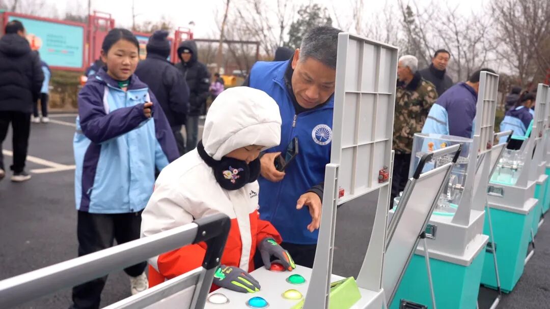 广场上,科普大篷车与流动科技馆无疑是最具人气的“打卡地”。磁力传动摆、懒惰环、珠子塔、彩色拼图等一件件趣味科普展品整齐陈列,青少年们好奇心十足,或俯身观察展品原理,或动手实操体验互动乐趣;科普志愿者们穿梭其间,耐心解答大家的疑问,用通俗的语言拆解科学奥秘,让现场充满了探索的乐趣与欢声笑语。