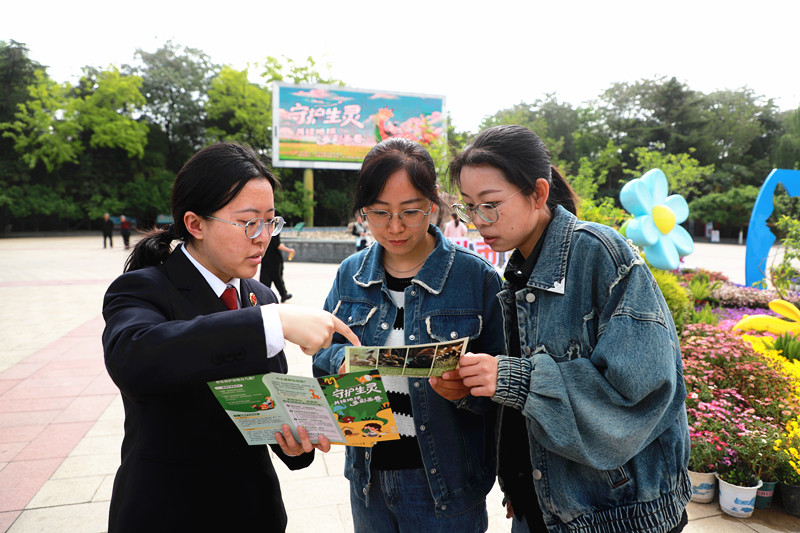 4月20日,在第57个“世界地球日”来临之际,郑州铁路运输检察院、郑州市动物园与河南省环保联合会、郑州铁路运输法院、郑州市公安局环食药侦支队等多家单位在郑州市动物园开展“守护生灵,共绘地球多彩画卷” 的主题活动,以“不起诉公开宣布+志愿服务+趣味游园”的方式让广大市民在沉浸式体验中感受法治力量。