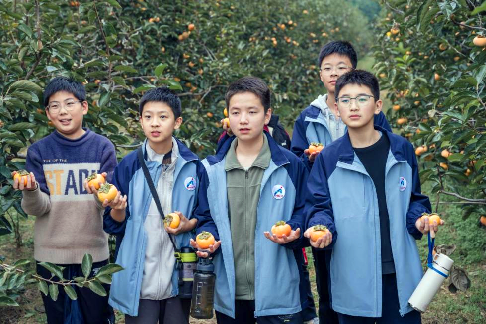 柿子园中,橙红的果实挂满枝头,犹如一盏盏小灯笼。同学们品尝了刚采摘的脆甜柿,红扑扑的笑脸映着橙红的果实,成了果园里最美的风景。