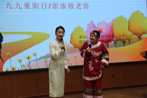 随后,老教师们观看了一场由河南省曲剧艺术保护中心的优秀演员、名角大卡为老师们带来的助兴演出,他们是省级非物质文化遗产“中州筝派”代表性传承人、国家一级演奏员王建老师,著名戏曲彩旦、号称中原第一女丑的张晓英老师,中国戏剧梅花奖、多次荣获国家级、省级戏剧大赛一等奖的李金花老师,毕业中国戏曲学院、师从著名戏曲教育家左奇伟教授、多次在省市大赛中荣获一等奖的孪生姐妹高玉明、高玉慧老师。
