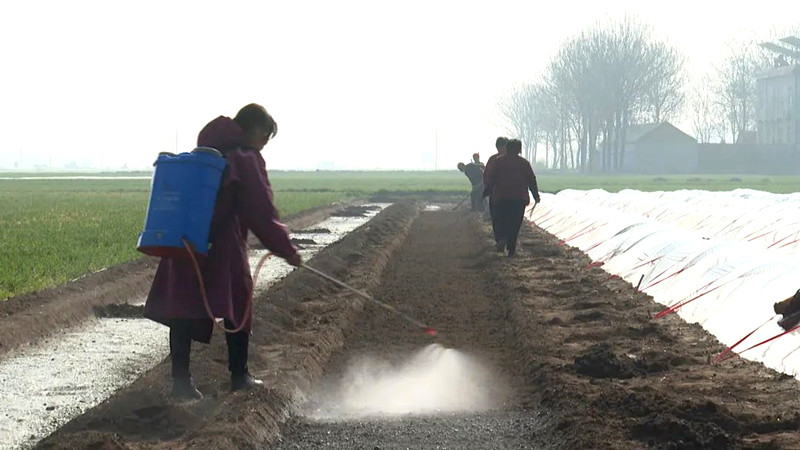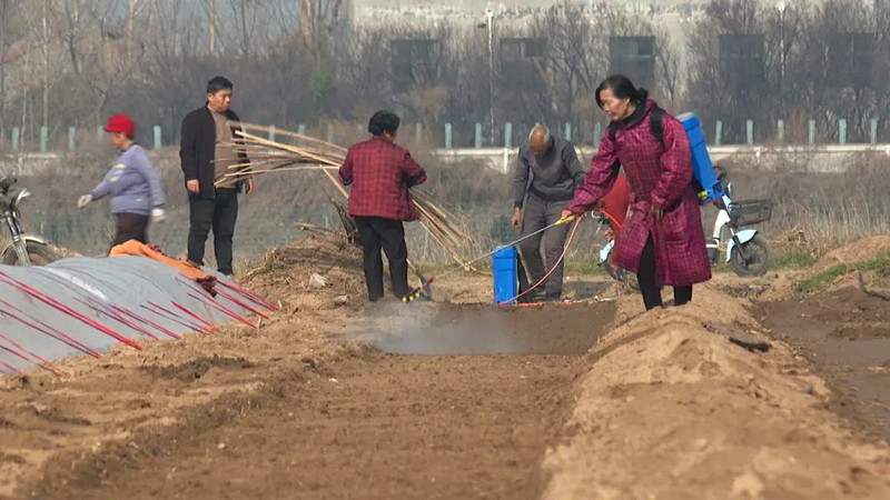 禹州市中医药产业发展中心郝占超介绍道:“这块基地使用的品种是省农科院提纯促壮的新品种郑丹1号,这个品种在2022年年底得到了河南省中药材品种鉴定专业委员会的鉴定。另外,这块基地还使用了新技术,如水肥一体化和病虫草害绿色防控。在病虫草害方面,利用诱捕器和生物菌剂来预防茎线虫和根腐病的发生。”