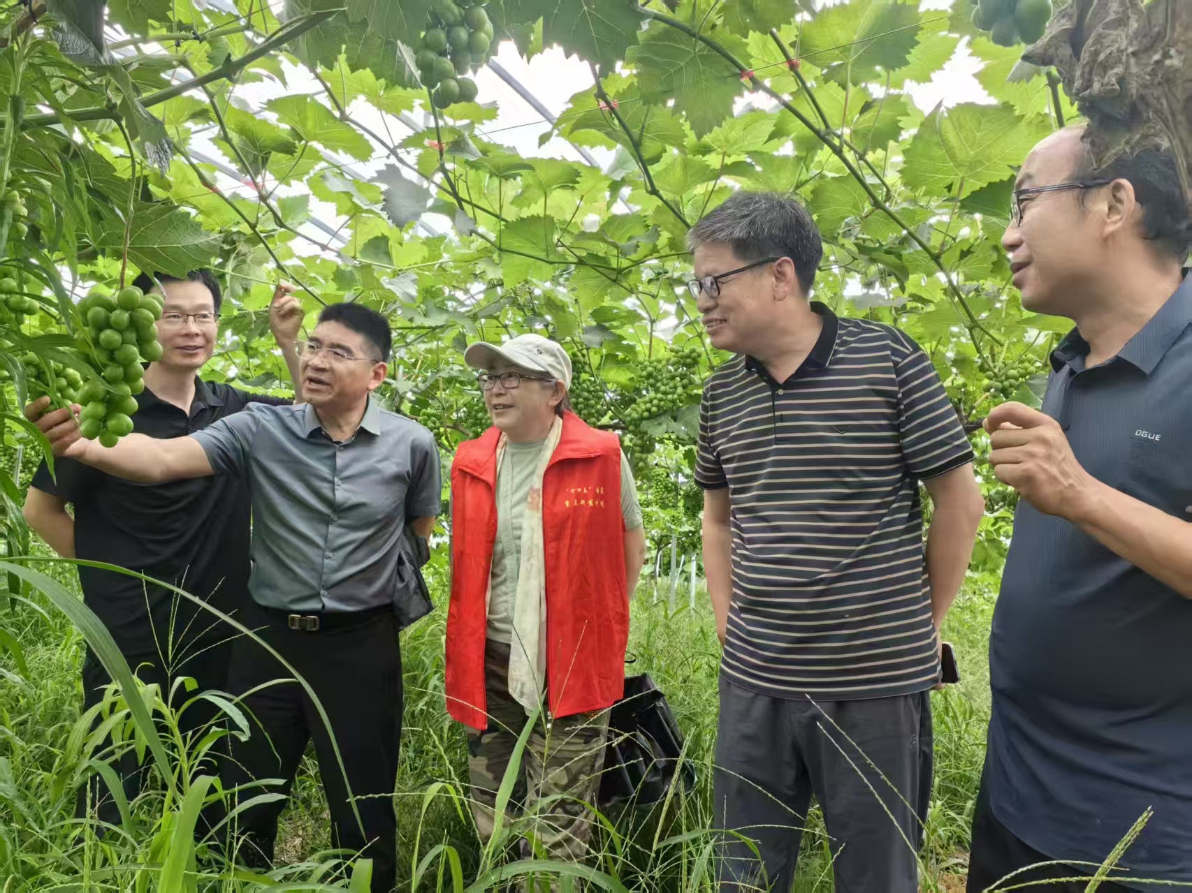 专家们穿梭于藤蔓之间,针对当前果实膨大关键期,从疏果定果、水肥管理到病虫害防治,进行全流程示范教学。陈锦永在猕猴桃架下支起“流动课堂”。他掰断一根过密的副梢:“记住这个‘50厘米黄金线',主蔓两侧半米内的新梢别碰,培养好下年的结果母蔓。”顾红则通过现场答疑、发放技术手册,将先进的种植技术和管理经验倾囊相授。