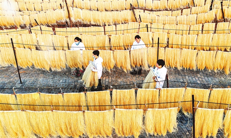 在中国粉条文化博物馆,琳琅满目的展品诉说着粉条的悠久历史;在粉条制作技艺“非遗”传习所、DIY工坊,通过18道工艺演示、亲手制作七彩凉粉,让游客亲身体验“非遗”文化魅力;占地3000亩的“红薯公园”,种植着40余种有机红薯,成为游客亲近自然的好去处……当红薯文化与文旅产业碰撞融合,“催生”出国内首家粉条产业观光工场,每年吸引近5万名游客前往盛田农业等农业龙头企业观光旅游。