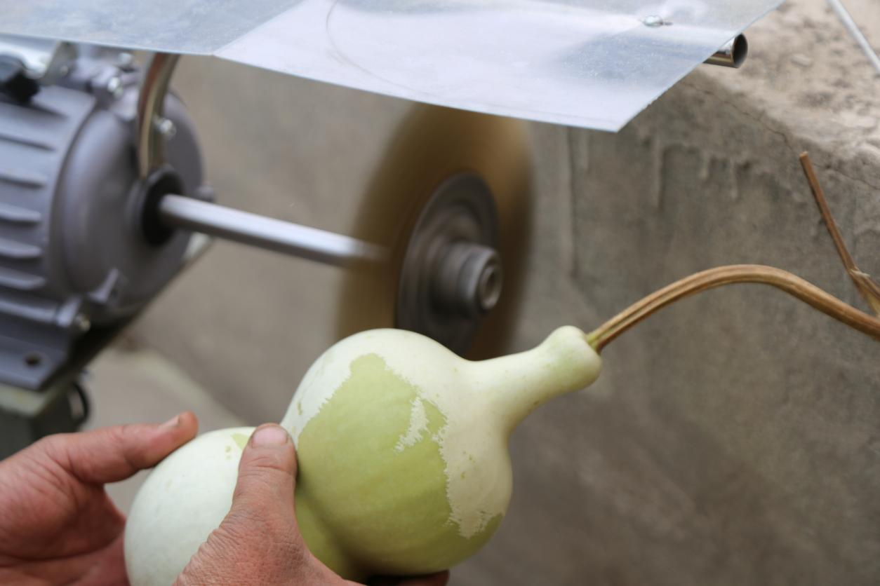 为了方便运输和销售,他还在家中购置了一套加工设备,可以将采摘下来的葫芦进行简易削皮加工。“今年的亩产量大概700个葫芦,品相都很不错。”杨波一边说一边展示着他的葫芦。