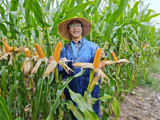 这些参展品种各具特色,优势显著,吸引了不少与会人员驻足咨询。其中,YD189格外受到关注。YD189是由河南农业大学农学院李浩川教授带领团队历经多年攻关,结合黄淮海地区气候多变、病虫害频发的种植痛点培育出的突破性玉米新品种,凝聚了其团队在玉米遗传育种领域的深厚积累与科研智慧。在2025年黄淮海夏玉米区,在YD189生长关键期遭遇了前期干旱、中期病虫害高发、后期阴雨寡照等多重不利因素的严峻考验下,在试验田里展现出的“秆壮穗大、籽粒饱满、活秆成熟”的突出表现,将成为公司在黄淮海夏播区推广的新的拳头玉米新品种(河南年年丰种业已于2025年10月23 日在中原农谷河南农大祝楼科研基地召开YD189全国经销商现场观摩会)。