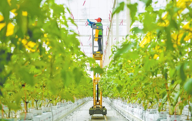 洛阳市伊滨区洛阳国际现代农业科技示范区一期智能温室项目内,村民正在忙碌。