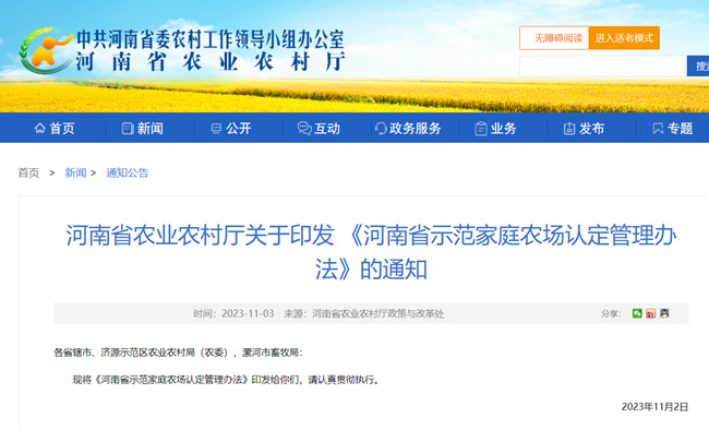 需要注意的是,河南省示范家庭农场将实行动态管理,由县级农业农村部门对辖区内省级示范家庭农场每三年监测一次。