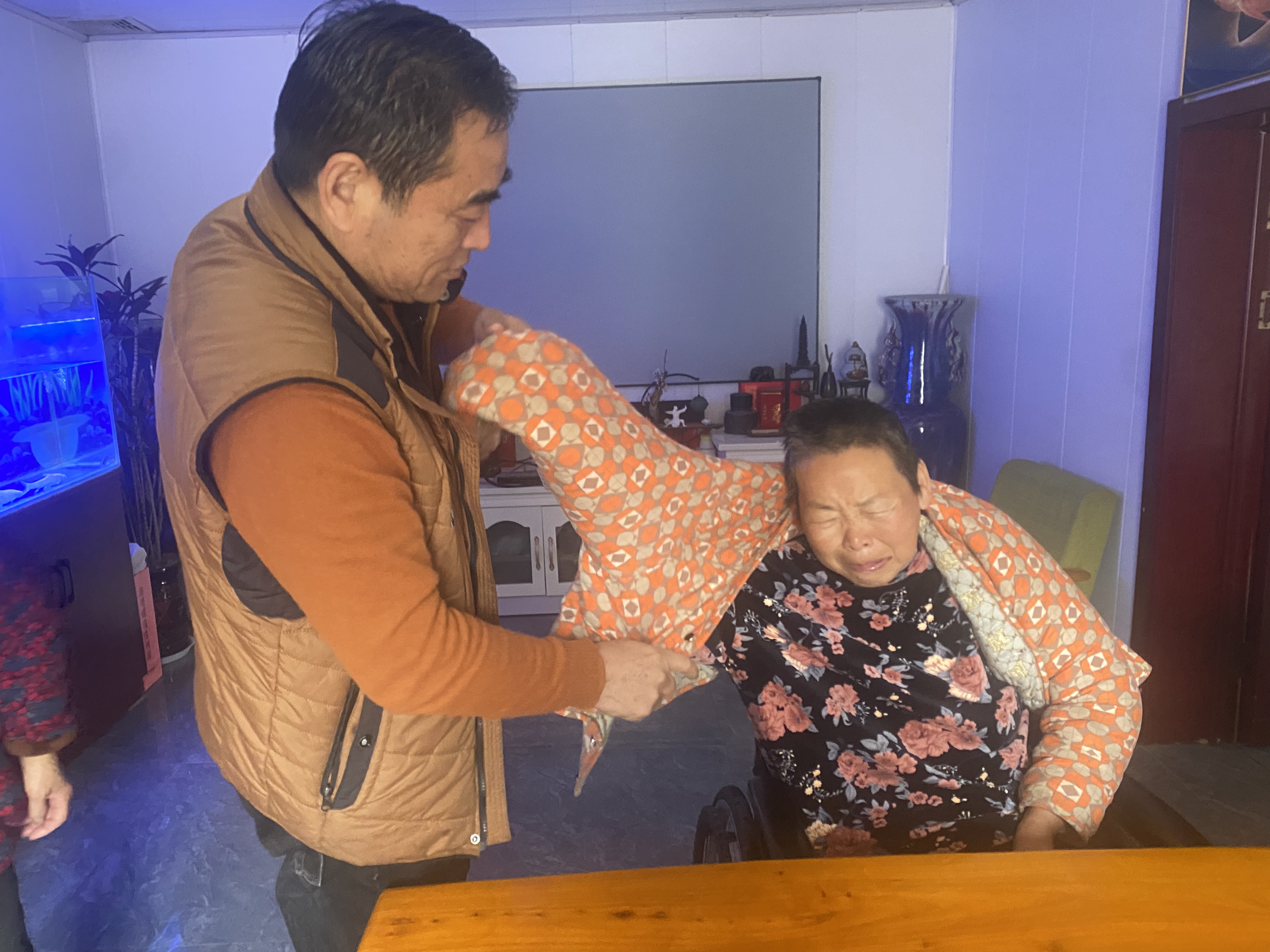 然而,天有不测风云。2020年,突如其来的一场大病打破了曹存立家原本平静的生活。曹存立的妻子突发脑梗,虽然抢救及时保住了性命,但也留下了严重的后遗症——瘫痪在床、大小便失禁、生活不能自理。面对妻子的疾病,为了让孩子们能安心工作,当时在广州务工的曹存立毫不犹豫地辞去工作回到家中,承担起照顾妻子的重任。