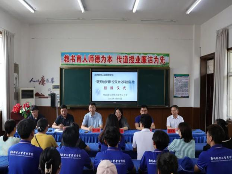 为进一步宣传学校空天特色,传播空天文化,弘扬空天精神,提升乡村地区学生的科学素养,贯彻落实习近平总书记关于建设航天强国的重要指示,推动郑州航空工业管理学院“蓝天绘梦师”空天科普志愿服务项目与乡村振兴计划有效结合,7月10日至7月14日,2023年暑期“三下乡”校级团队“蓝天绘梦师”空天科普志愿服务团在航空宇航学院党委副书记张丽娜、指导老师林允博、冯睿聪的带领下,先后来到荥阳市第八小学、修武县七贤镇方庄中心小学、修武县韩愈小学、栾川县城西中心小学,展开了为期5天的空天科普志愿服务活动。
