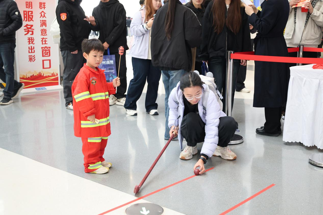 消防科学互动集市同样人气高涨。安全锤丸、手工漆扇、安全知识投壶、空气炮等趣味互动项目前人头攒动。参与者可通过答题挑战获得体验资格,在欢声笑语中掌握消防安全常识。