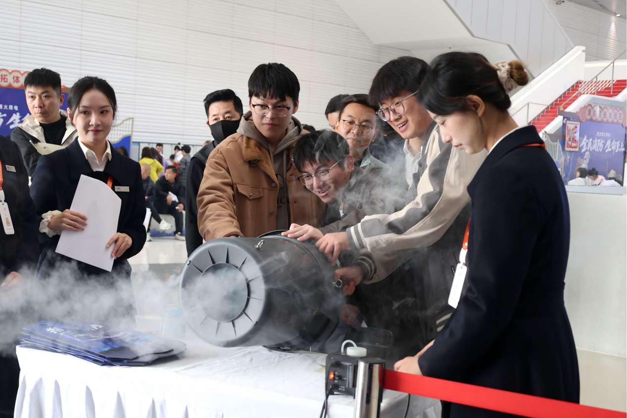 场馆演示区,家庭火灾防范、缓降器逃生、VR逃生等体验项目同样也让人们收获了许多专业的技能知识。烟雾蔓延模拟演示让群众直观感受火灾扩散速度,逃生装备实操教学则帮助大家掌握毛巾捂鼻、低姿撤离等自救技巧;户外的VR逃生、烟雾帐篷、油锅灭火、缓降体验等项目更具沉浸感,参与者在逼真场景中模拟应对火灾。