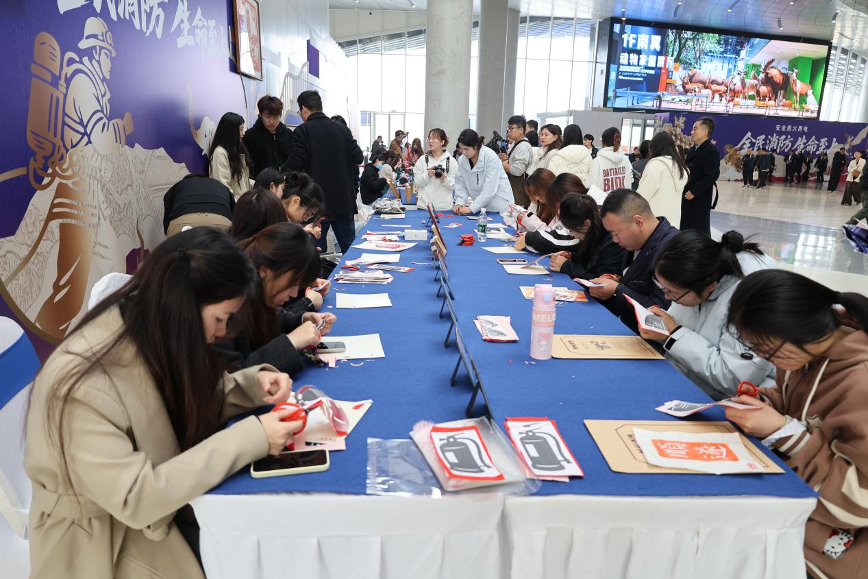 非遗文化与消防科普的创新融合成为现场一大亮点。当高浮雕传拓、剪纸、面塑、皮影戏等传统技艺融入消防元素,观众亲手制作“消防人物”面塑、观看消防主题皮影戏,在传统民俗体验中潜移默化学习安全知识。