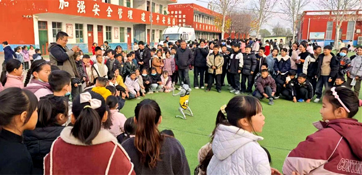 活动伊始,科普大篷车展出的“激光琴”“听话的小球”“静电乒乓”等互动式科普展品,瞬间点燃学生们的探索热情。大家围在展品前,动手操作、相互讨论,在亲身体验中感受科学的奇妙;智能机器狗带来的“才艺表演”更将现场气氛推向高潮,引得学生们驻足观看,掌声与欢呼声此起彼伏,校园里满是欢乐的科学氛围。