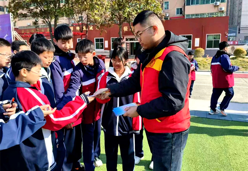 在趣味科普环节后,科普志愿者结合青少年生活实际,用通俗易懂的语言、生动鲜活的案例,围绕“宪法是什么”“宪法如何守护我们的成长”等问题展开讲解,现场发放宪法宣传折页200余份,摆放反邪教主题展板6块,通过真实案例剖析与科学原理解读,清晰揭示邪教的危害本质,帮助学生们树立“崇尚科学、反对邪教”的意识,进一步筑牢法治与科学双重防线。