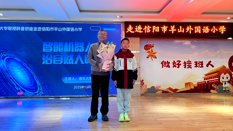 “机器人会拥有感情吗?”“它们真的会统治人吗?”12月9日下午,由中国老科学技术工作者协会、河南省科学技术协会主办,信阳市科学技术协会承办的“银龄科普行动——院士专家巡讲”活动走进羊山外国语小学。中国老科学技术工作者协会科普报告团成员、清华大学教授董景新以《智能机器人会统治自然人吗?》为题,为200余名小学生带来了一场穿越古今的机器人科普盛宴。