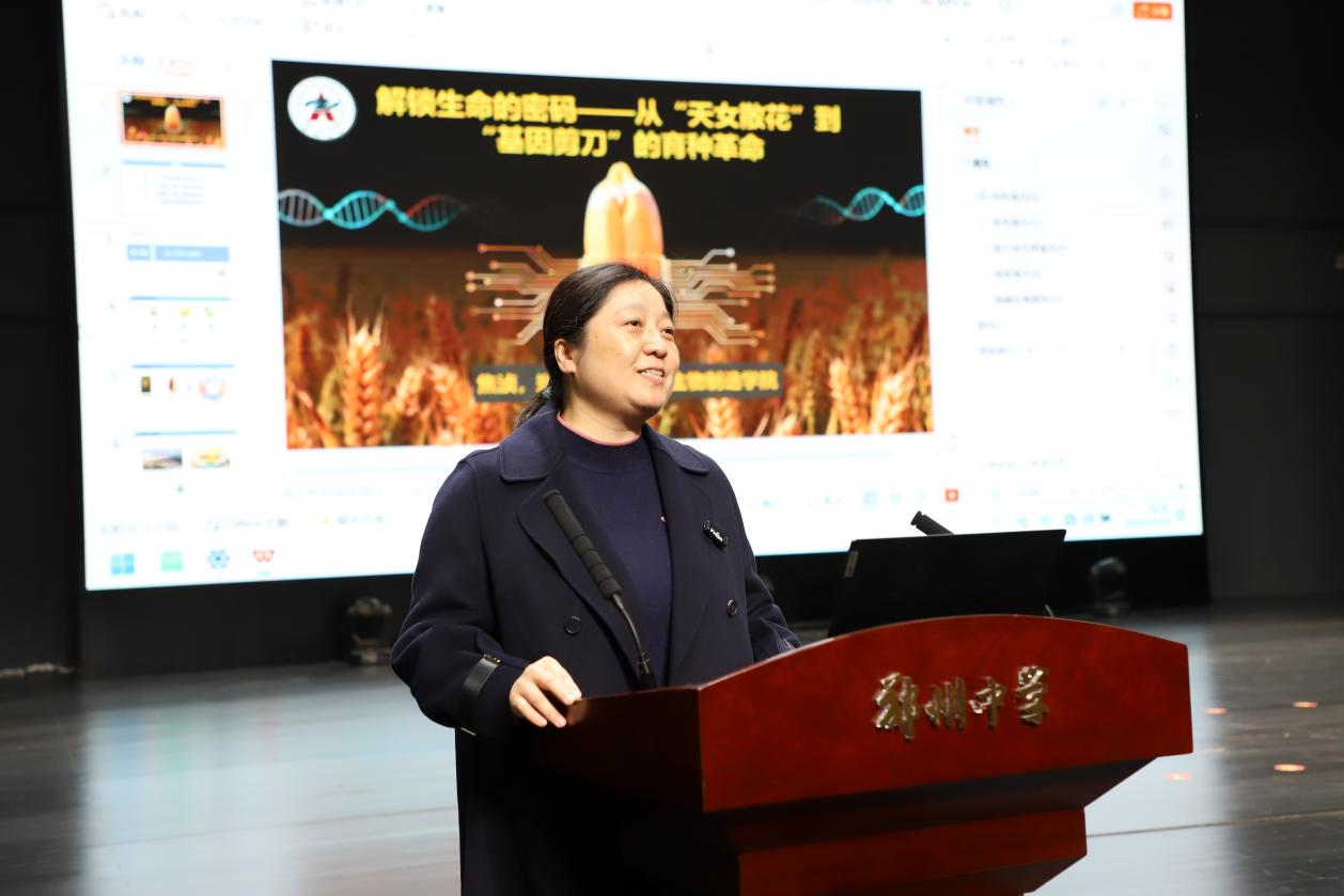 12月14日,象湖科学讲堂第49期前沿科技系列第9讲——《解锁生命的密码:从“天女散花”到“基因剪刀”的育种革命》在郑州中学成功开讲。来自郑州大学和郑州中学的师生现场参与,河南省科技馆副馆长侯家选、郑州大学科学技术研究院高级主管杨扬、本科招生办公室招生宣传科科长赵坤、郑州中学校长李松涛等相关领导出席。省科技馆、郑州科技馆、焦作市科技馆、许昌科技馆等同步进行了线上直播,累计约3000人参与讲座,共同展望设计定制作物的无限可能,提前触摸未来农业的发展脉搏。