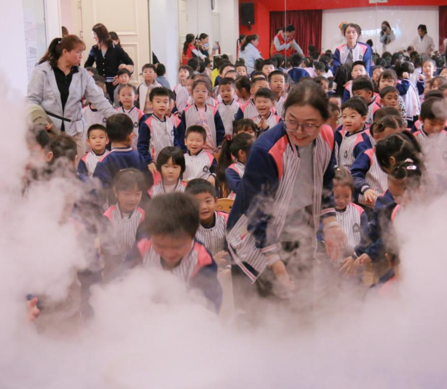 活动依托奇趣科学科普志愿服务队的专业力量,针对不同年龄段学生的认知特点和兴趣点,量身定制了多样化的科学表演与互动体验内容。情景剧《呦呦寻蒿》生动再现了科学家屠呦呦发现青蒿素的科研历程,《爱探索的居里夫人》生动演绎了居里夫人·玛丽发现镭的故事,让同学们在感动中感悟科学家精神,引导他们以科学家为榜样,勇敢地探索未知世界;“空气大炮”、“火焰掌”、“液氮蘑菇云”、“静电飞花”等趣味科学实验,将抽象的物理、化学原理以直观、震撼、有趣的方式呈现,打破了传统课堂的边界,让科学知识“活”了起来。