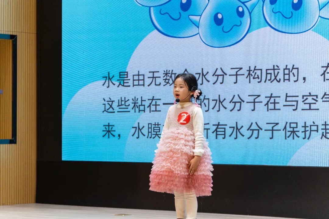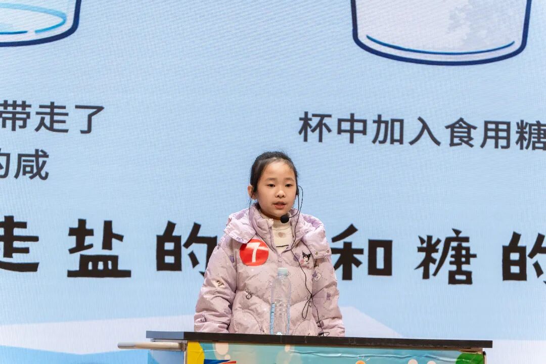 低年级组参赛选手从生活现象展开科学探究,演讲题目如《油滴“逃逸记”》《水的表面张力》阐释物理特性;《小蚂蚁的大智慧》《匠心与科技的双向奔赴》则从生命行为与工艺技术中提炼出科学思考;《科技飘香 梦想启航》《玉米的“魔法变身”之旅》《宠物食品里的“科学魔法”》聚焦生活科技,展现出从观察到理解的科学认知路径。