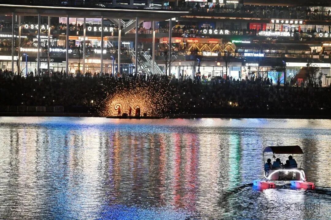 而在龙湖金融岛,这里推出非遗限定水上打铁花,朵朵铁花划破夜空,引得岸边游客惊叹声此起彼伏……新潮商都,传统年俗,就这么走进了年轻人的心里。