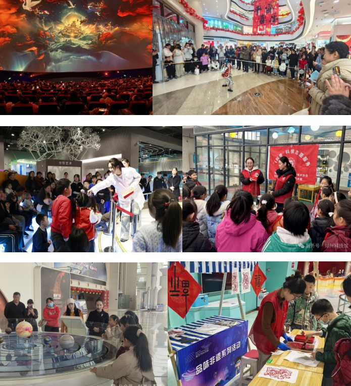 科普与惠民同行,让科学普及暖起来。科普的本质是为民,全省各地科技馆作为公共文化阵地,始终坚守普惠初心。春节期间,各地科技馆打破场馆壁垒,延伸服务触角,让科学走进千家万户。省科技馆的沉浸式科普影片、洛阳市科技馆的“上门展演”、鹤壁市科技馆的“夜游”新玩法,让不同年龄段的观众都能找到属于自己的科学乐趣;郑州科技馆的志愿服务队走进基层,三门峡市科技馆的公益讲解遍布展厅,焦作市科技馆的“科技大闯关”趣味十足,从白发老者到懵懂稚子,人人都能参与、人人都能受益,让科普不再是小众体验,而是全民共享的新春盛宴。