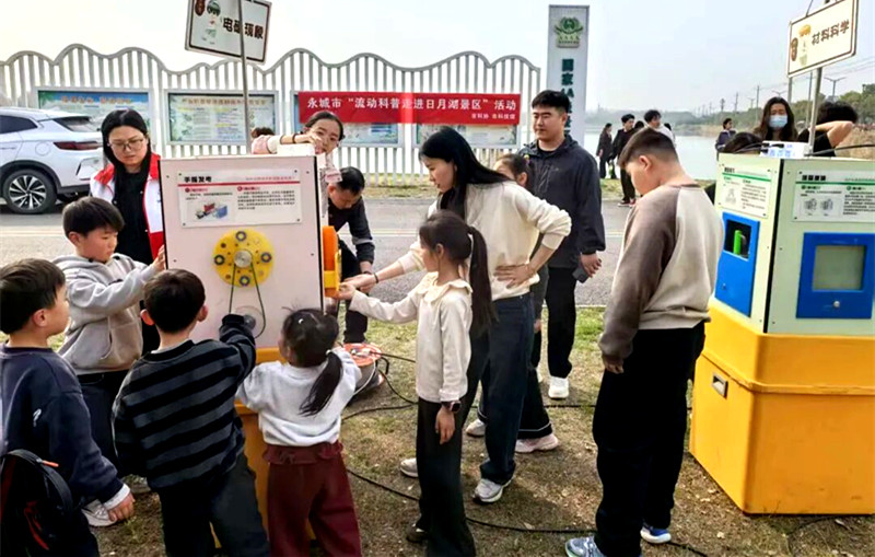 春风送暖,科普同行。为丰富群众精神文化生活,普及科学知识,3月22日,永城市科技馆走进日月湖级景区,开展沉浸式科普体验活动,让广大游客在赏景休闲之余,近距离感受科学的魅力。