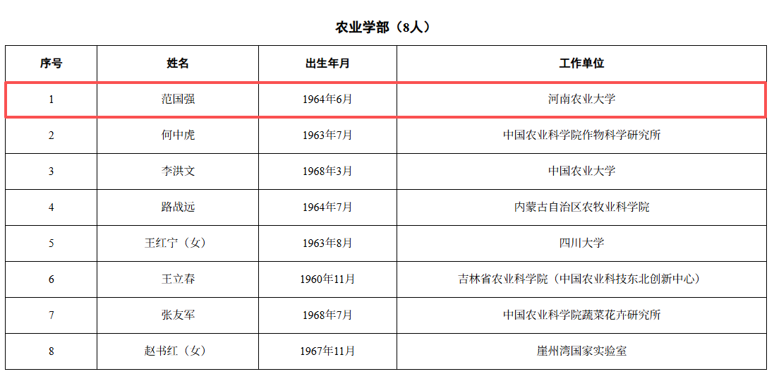11月21日,中国工程院发布《关于公布中国工程院2025年院士增选当选院士名单的公告》,河南农业大学范国强教授当选中国工程院院士。