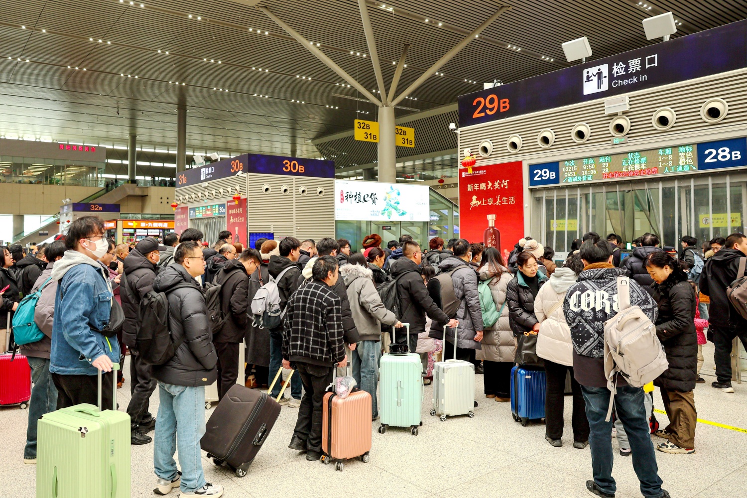 为丰富旅客出行体验,国铁集团郑州局在郑州东站组织开展了“我的铁路风景”暨“春运见礼 文明启行”主题宣传活动,将传统礼仪与中原文化融入春运服务中,着力营造文明、温暖的旅途氛围。候车大厅内,旅客有序排队、依次检票,洋溢着归家的期盼。